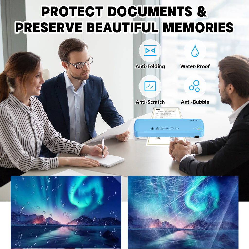 Multiple Usage Scenarios: Portable laminating machine can save important documents and precious photos for daily use. Widely used in offices, homes, and schools. This is an ideal choice for individuals, families, teachers, and office staff.