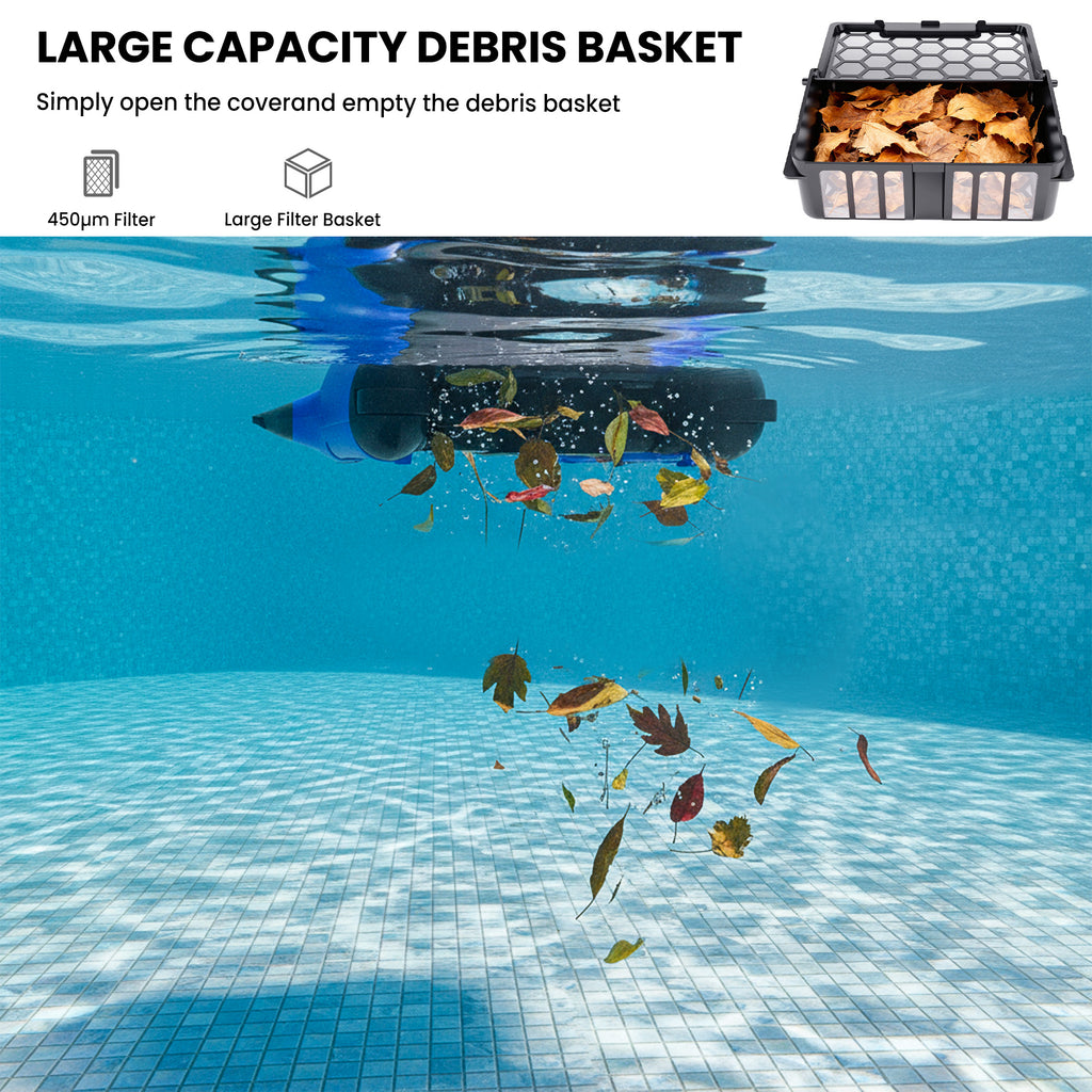 Large Capacity: The large capacity collection basket reduces cleaning frequency and can effectively remove debris such as leaves, dust, pollen, insects, and pet hair. It is suitable for any shape of swimming pool, minimizing pool cleaning work and freeing up your hands.