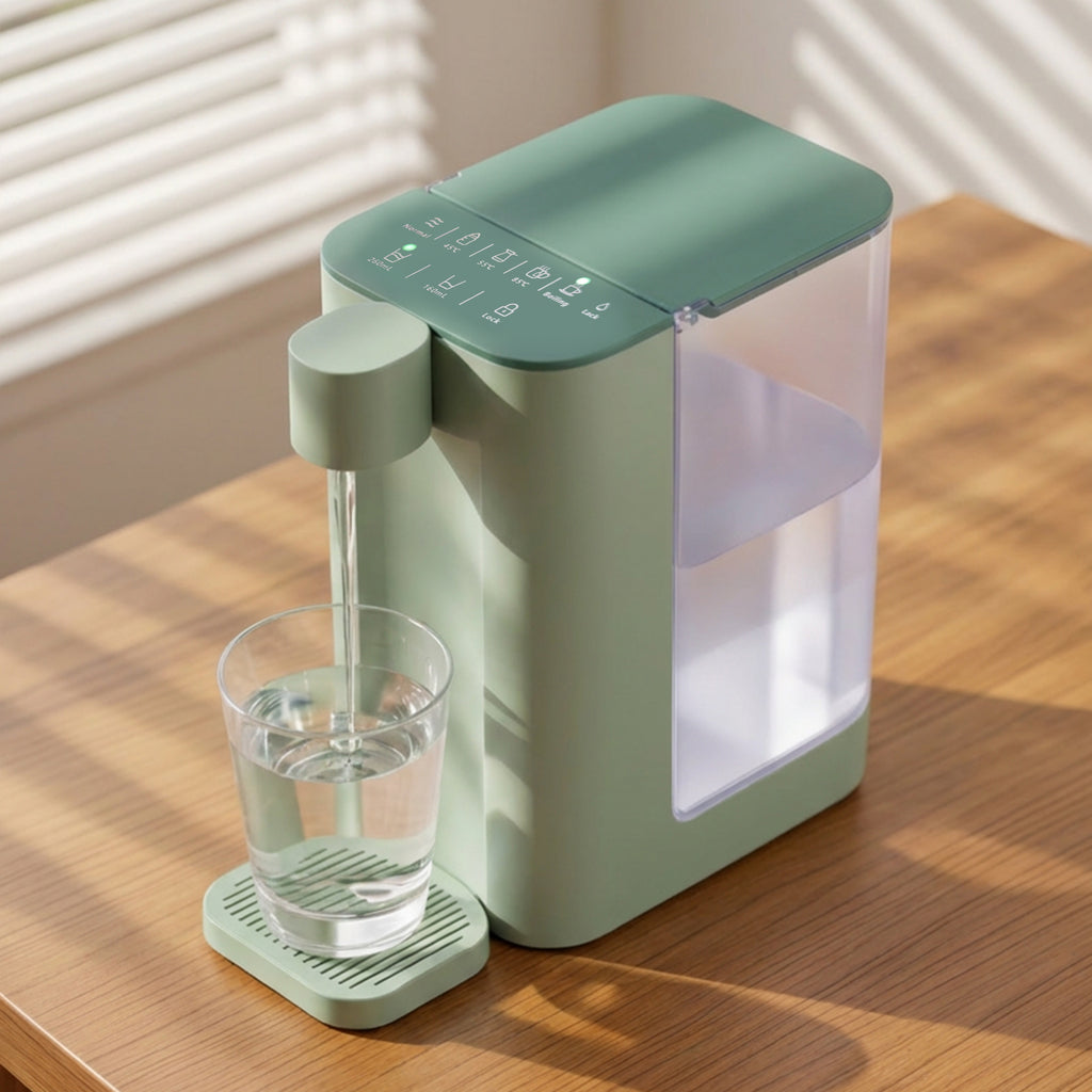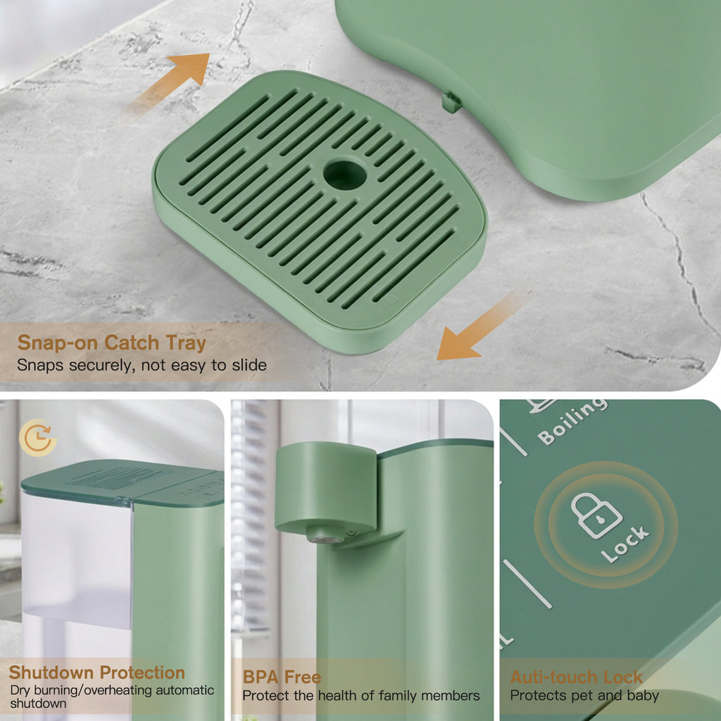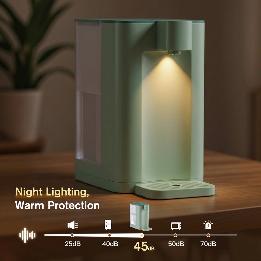 Low Noise & Compact Design: Operates at just 45dB for whisper-quiet performance. Its sleek, compact form fits easily on any countertop, making it an excellent space-saving countertop water dispenser or dorm-friendly hot water unit.