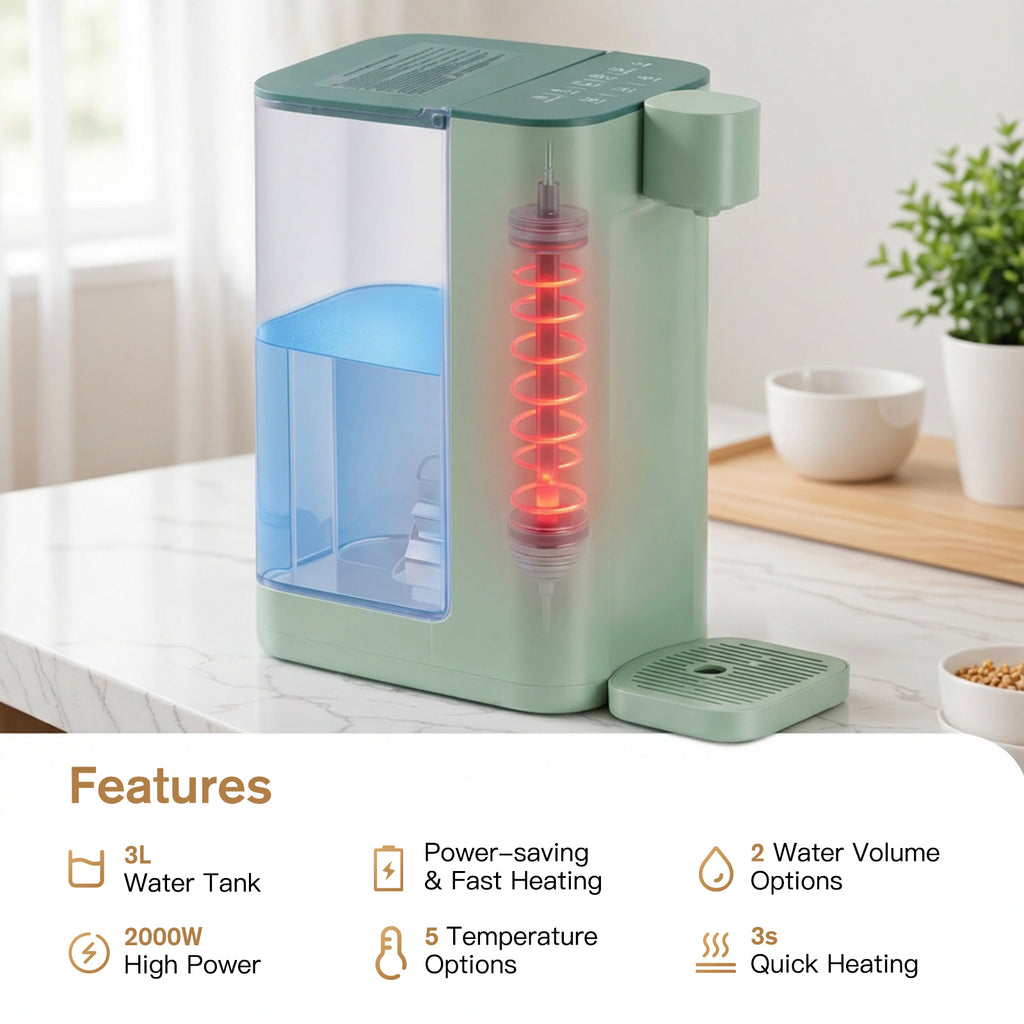 Upgrade your kitchen or office setup with this sleek Instant Hot Water Dispenser. Designed with 2000W fast-boiling technology, it heats water in just 3 seconds—making it faster and more efficient than a traditional electric kettle. With 5 temperature settings and 2 water volume modes, you can prepare everything from baby bottles and tea to noodles and coffee at the ideal temperature.