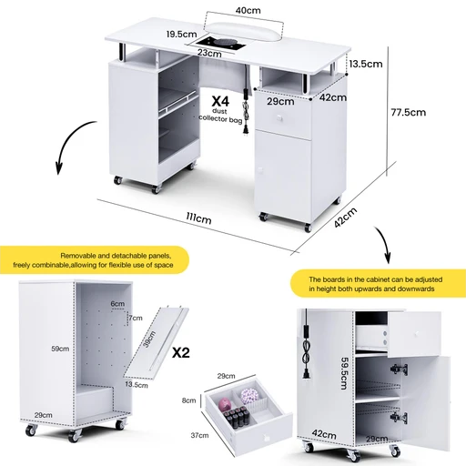- Movable & Lockable Nail Table: This nail desk features 8 smooth-rolling casters, with 4 lockable wheels for flexible mobility and stable placement.