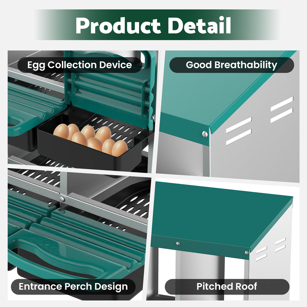• Built to Last: Crafted with galvanized steel panels, this chicken nesting box delivers exceptional rust resistance for lasting durability. The chicken roll away nesting box can be used outdoors for a long time. Vents on both sides provides air circulation inside the nest box, creating a fresh, dry and comfortable egg laying space for the hens.