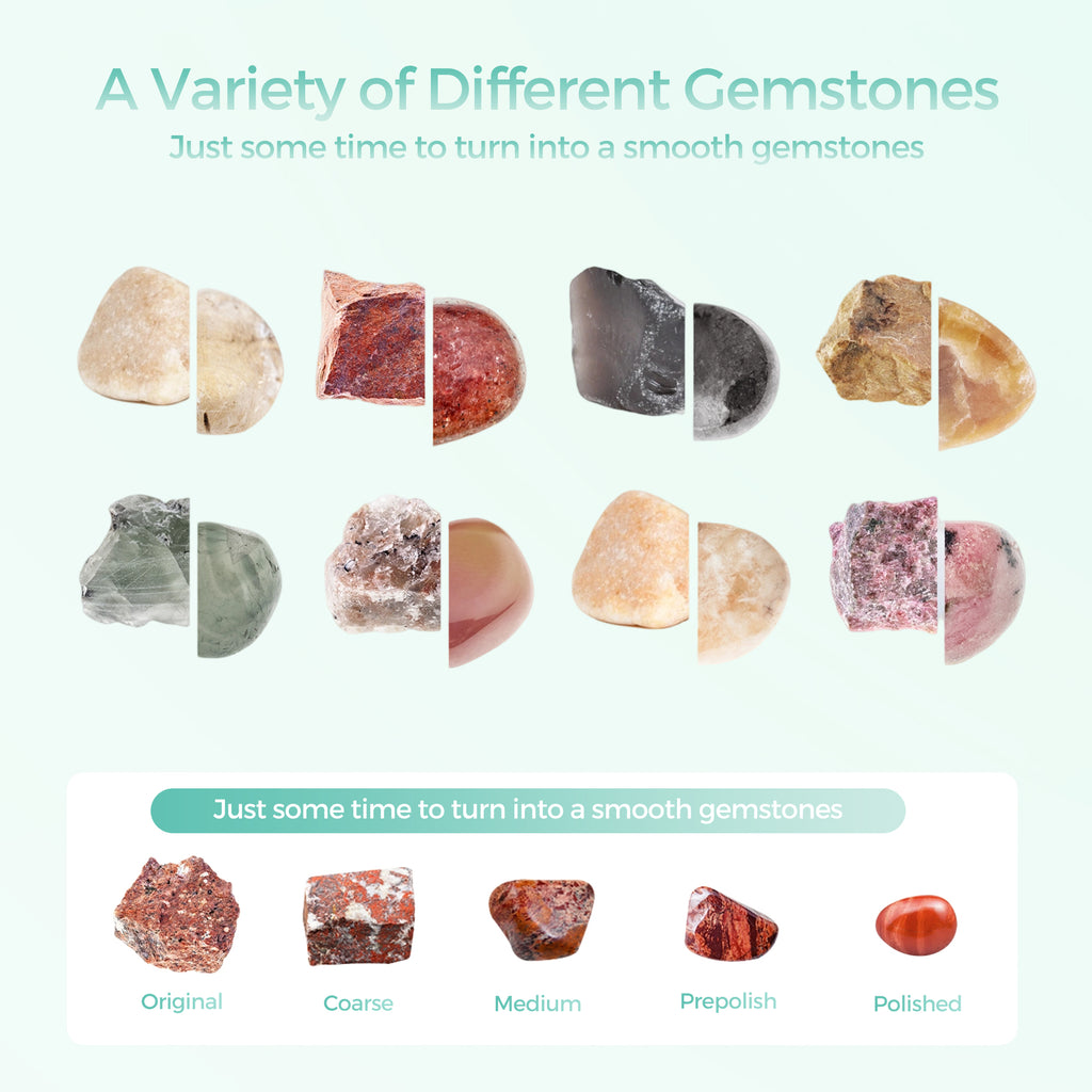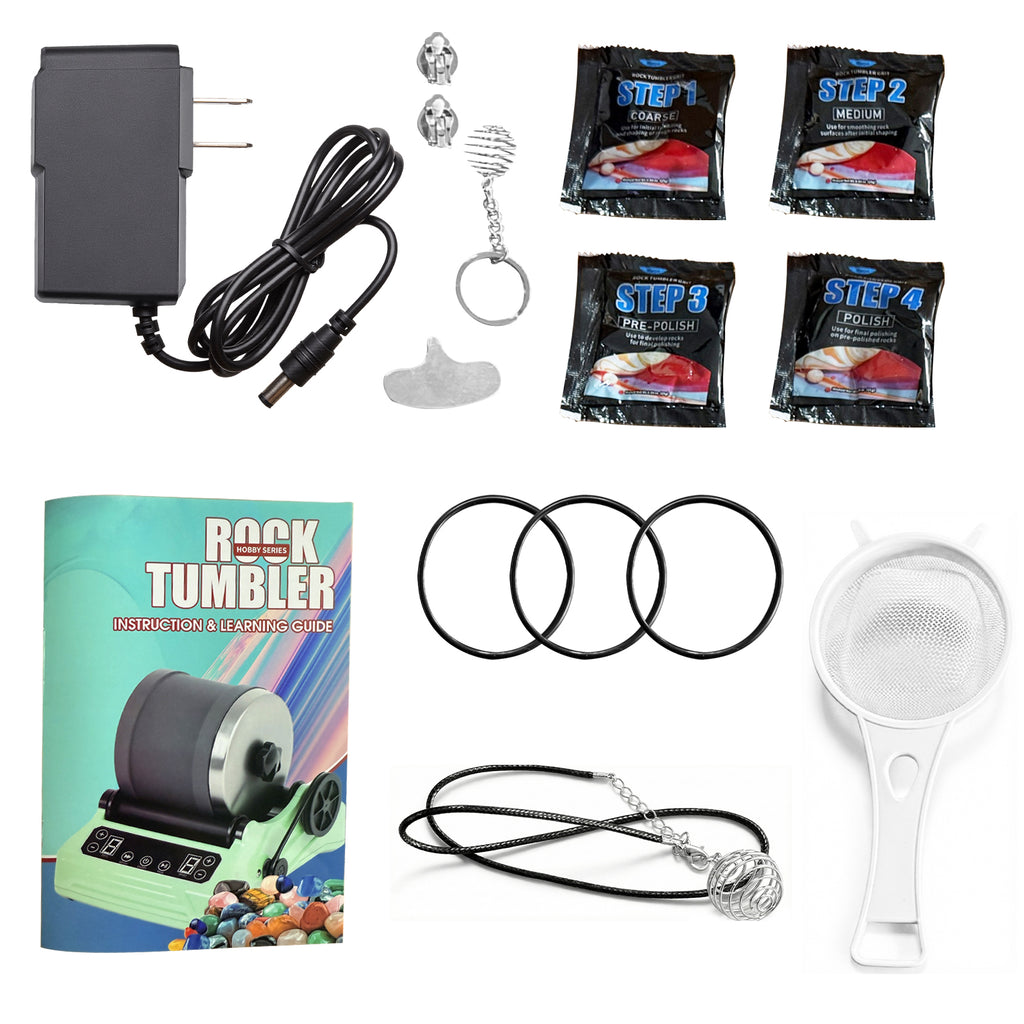 - Complete Rock Tumbler Polisher Kit: Includes 12V 1A adapter and quiet barrel for safe, durable polishing of gemstones and rocks.