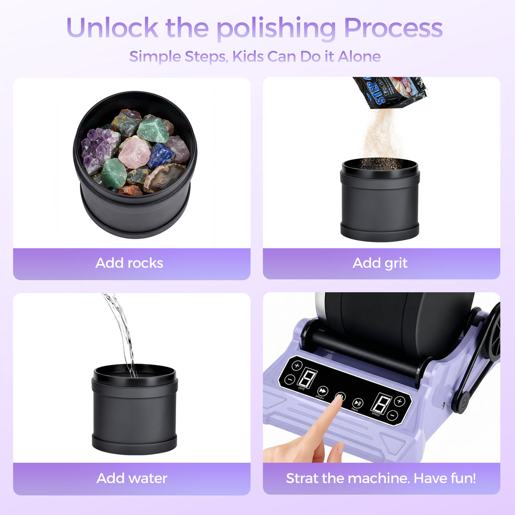 - Whisper-Quiet Operation: The rock tumbler is low noise lets kids learn without distraction.