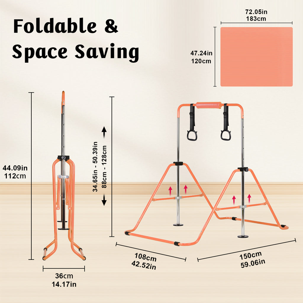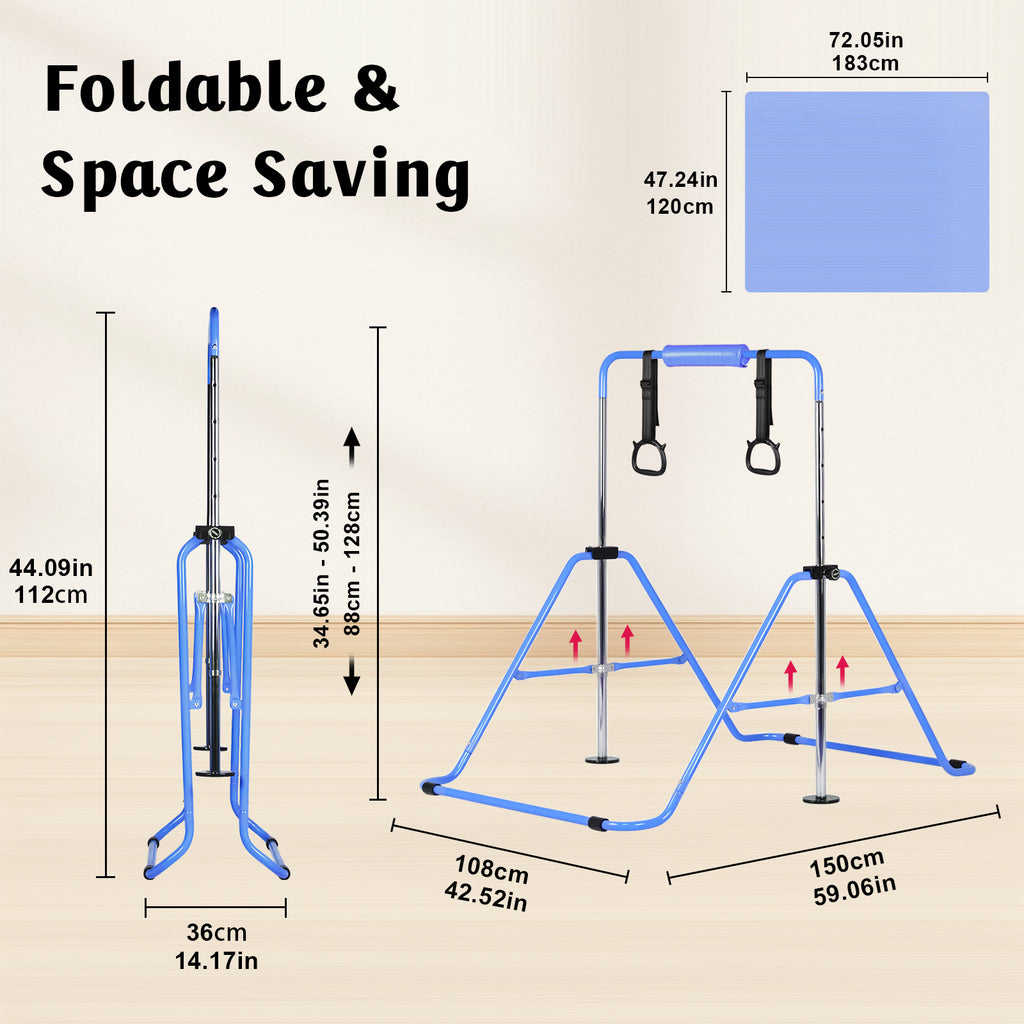 - Foldable Design: Save space in your home gym with our collapsible gymnastics bar; once training is over, fold it flat and tuck it away—perfect for apartments or any compact living area.