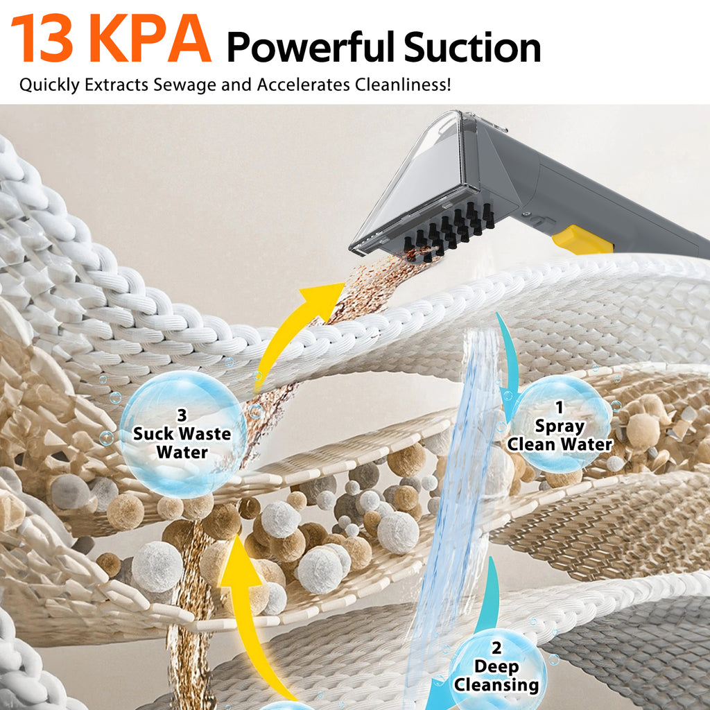 Introducing the Advwin Carpet Cleaner – a powerful 650W spot-cleaning solution with 13KPa suction. It’s dual tank system (1.5L clean water, 1.2L sewage) minimizes interruptions, while a 4M cleaning radius ensures portability. Ideal for fabric care, it effortlessly tackles pet stains, spills, and footprints. Weighing under 5Kg, it’s compact, with intelligent storage for wires and brushes. Simplify your cleaning routine with the efficient and versatile Advwin Carpet Cleaner.