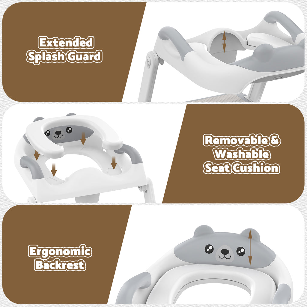- Friendly for Kids: The padded cushion is removable and easy to clean, with an extended splash guard for mess-free use. The fun and cute cartoon design makes potty training an enjoyable journey for your child, encouraging them to use their potty training seat with excitement.