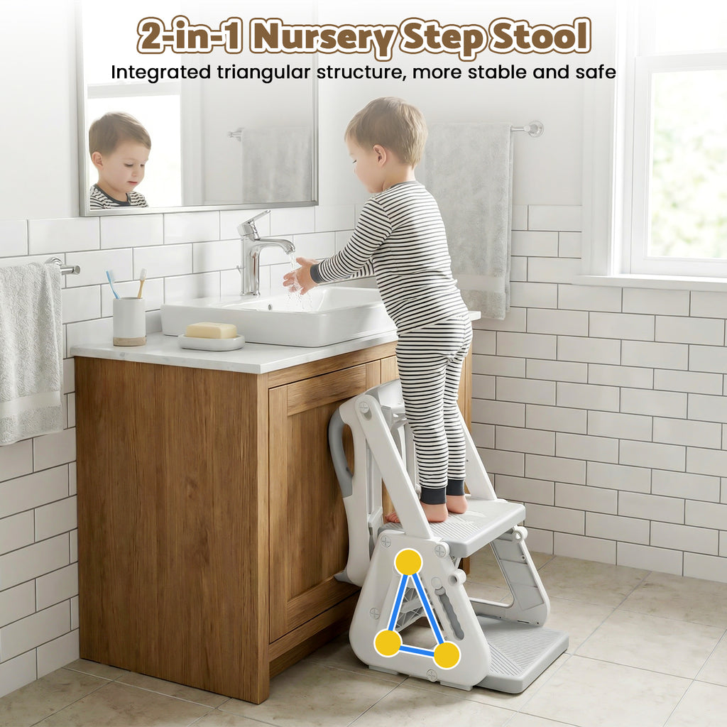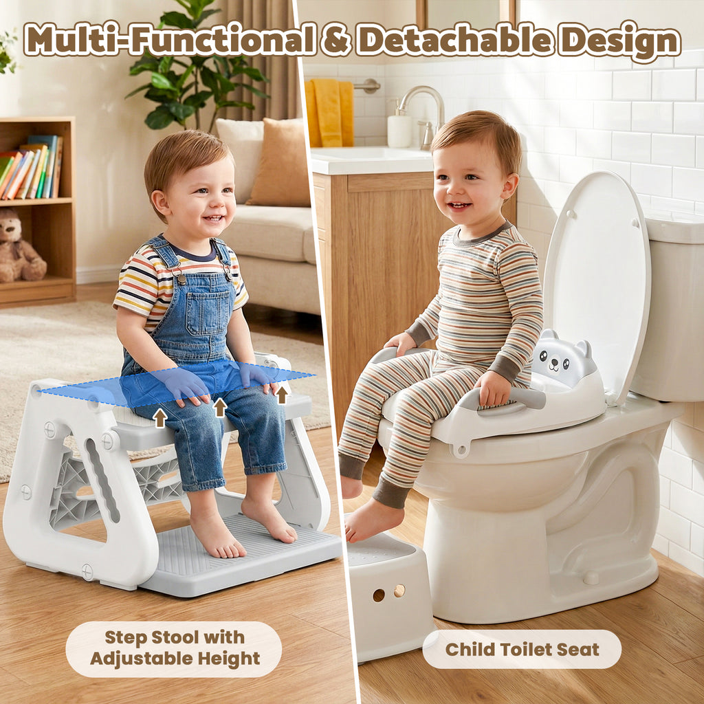 - Multifunctional Step Stool: The multifunctional 2-in-1 kids potty training seat grows with your child. Use it as a secure toilet training seat, help your child use the bathroom independently, or fold it into a sturdy step stool to reach the sink to wash up, or separate it into an independent toilet seat and a small stool.