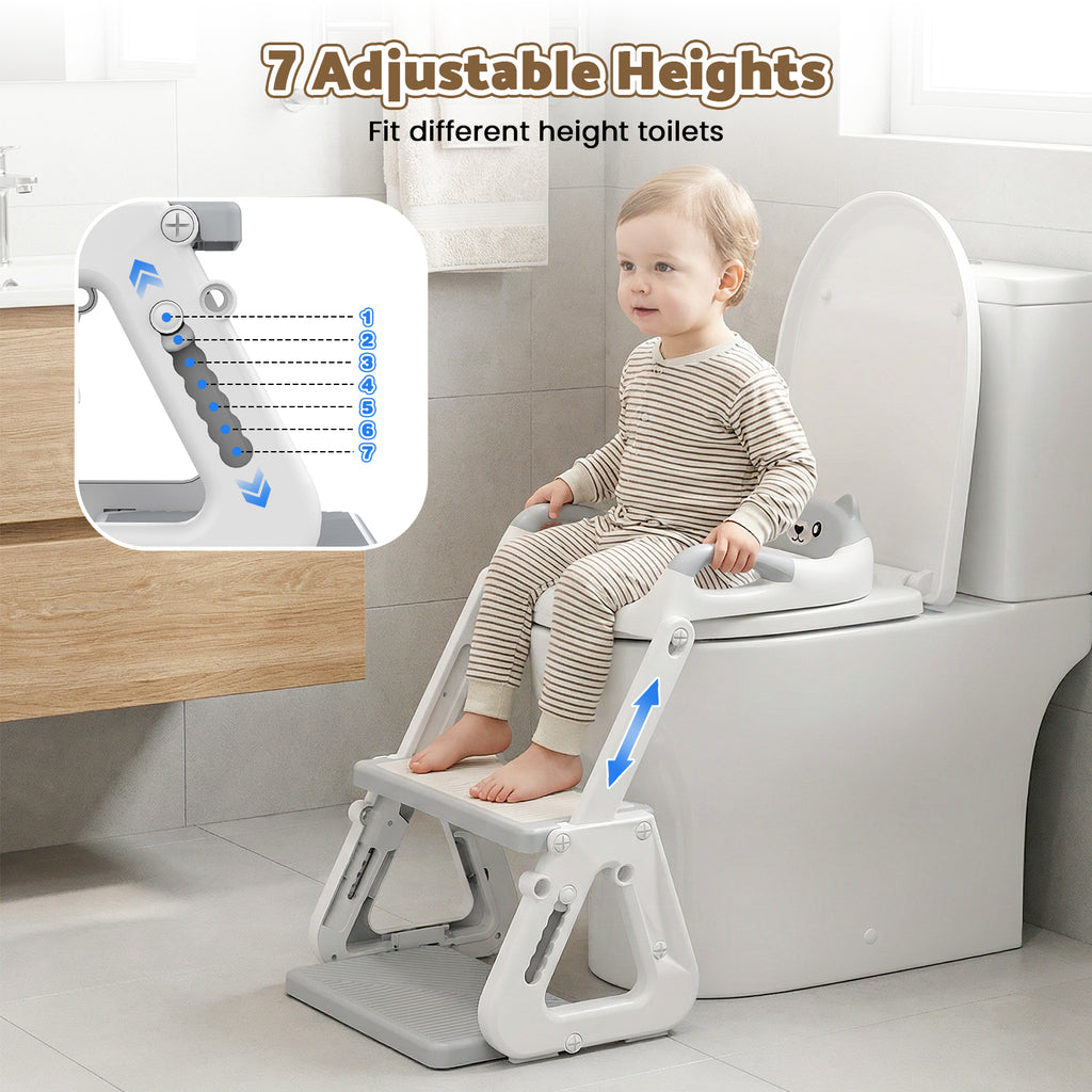 - Adjustable Height: Our toddler potty seat features 7 adjustable heights, and the footrest features 2 adjustable heights, fitting most toilets. The potty training seat adapts as your child grows, working with most potty training toilets in your home for long-term use.