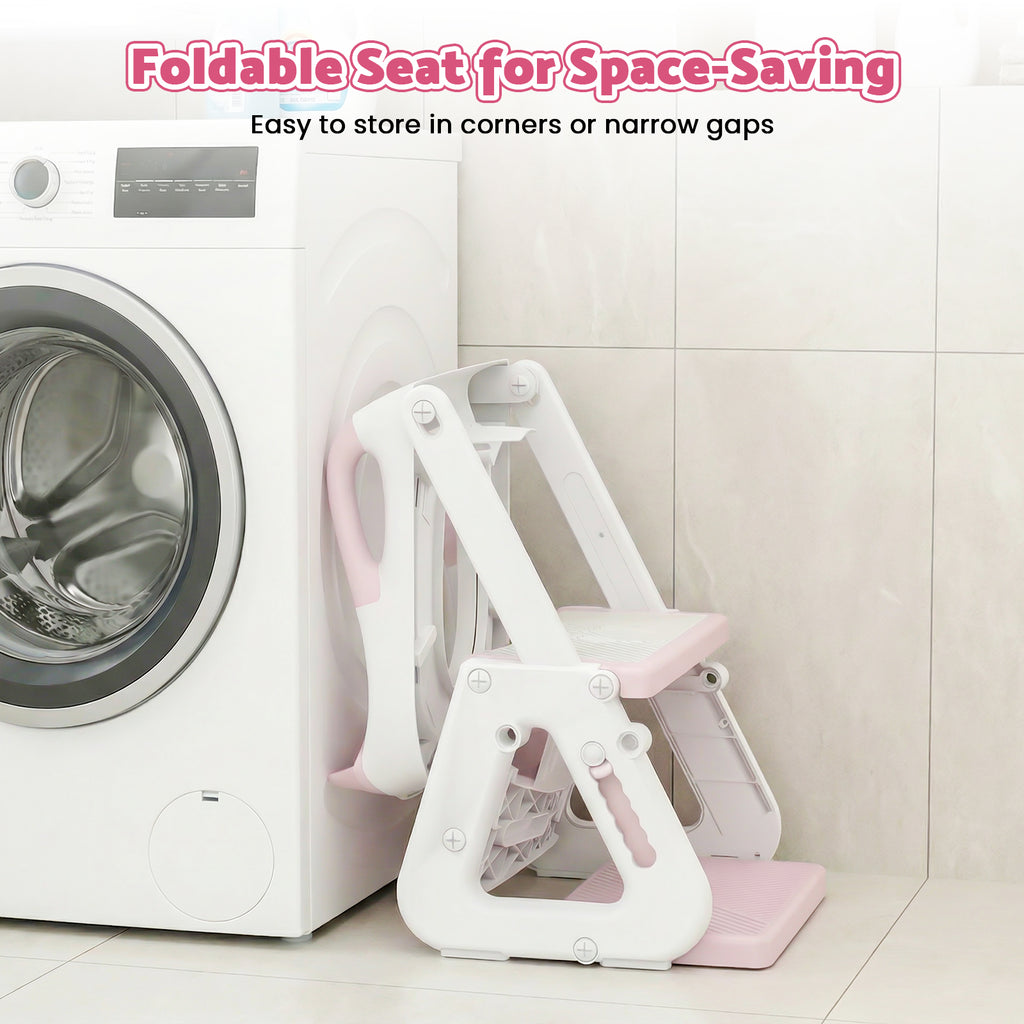 - Multifunctional Step Stool: The multifunctional 2-in-1 kids potty training seat grows with your child. Use it as a secure toilet training seat, help your child use the bathroom independently, or fold it into a sturdy step stool to reach the sink to wash up, or separate it into an independent toilet seat and a small stool.