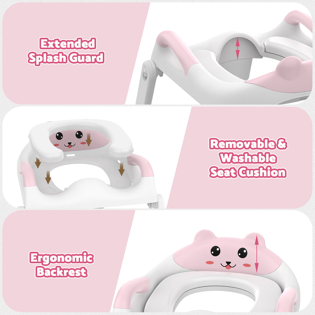 - Friendly for Kids: The padded cushion is removable and easy to clean, with an extended splash guard for mess-free use. The fun and cute cartoon design makes potty training an enjoyable journey for your child, encouraging them to use their potty training seat with excitement.