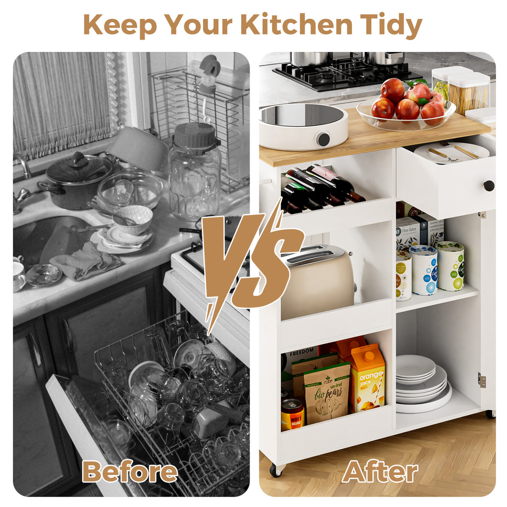 - Timeless Elegance: Blending a white finish with natural wood tone, this kitchen island with drawers adds timeless charm and warmth to any home decor, turning every kitchen moment into a delightful experience.