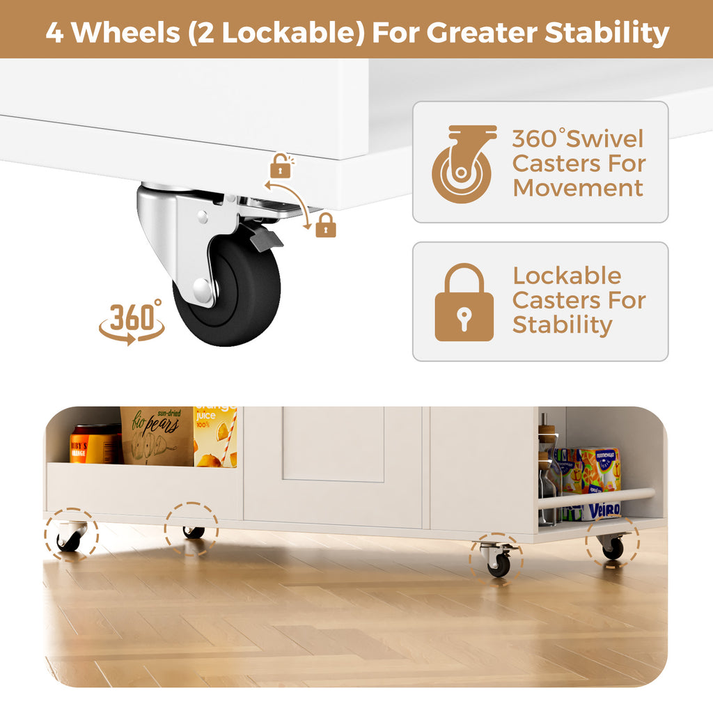 - Effortless Mobility: Designed with four heavy-duty casters—two lockable—this kitchen island on wheels moves smoothly across your floor and can be securely locked in position to simplify kitchen tasks.
