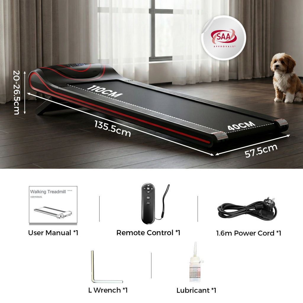 With a running area of 40 × 110 cm, this treadmill offers a comfortable stride while remaining space-saving. Supports up to 120 kg (265 lbs) and operates smoothly at 1–8 km/h. No assembly required – ready to use out of the box. Perfect for home treadmill workouts, apartments, and small-space indoor training.