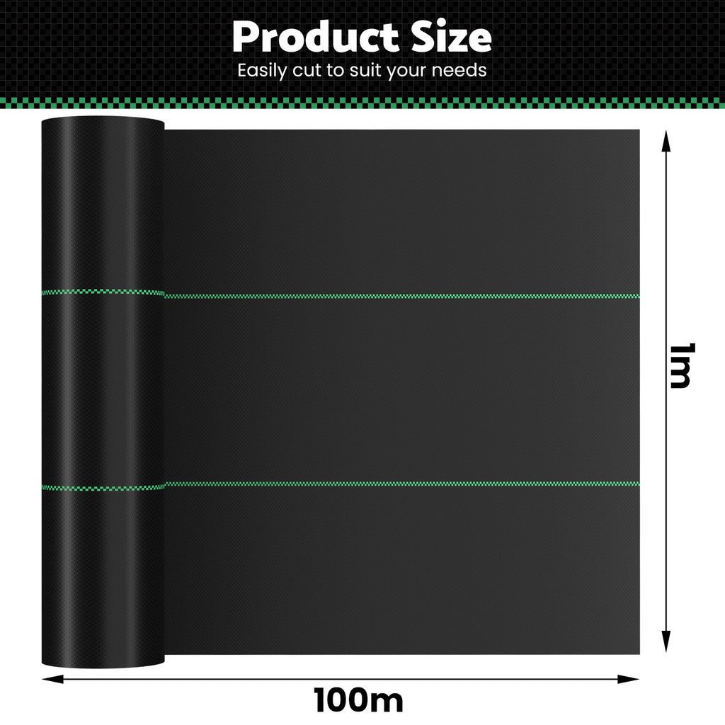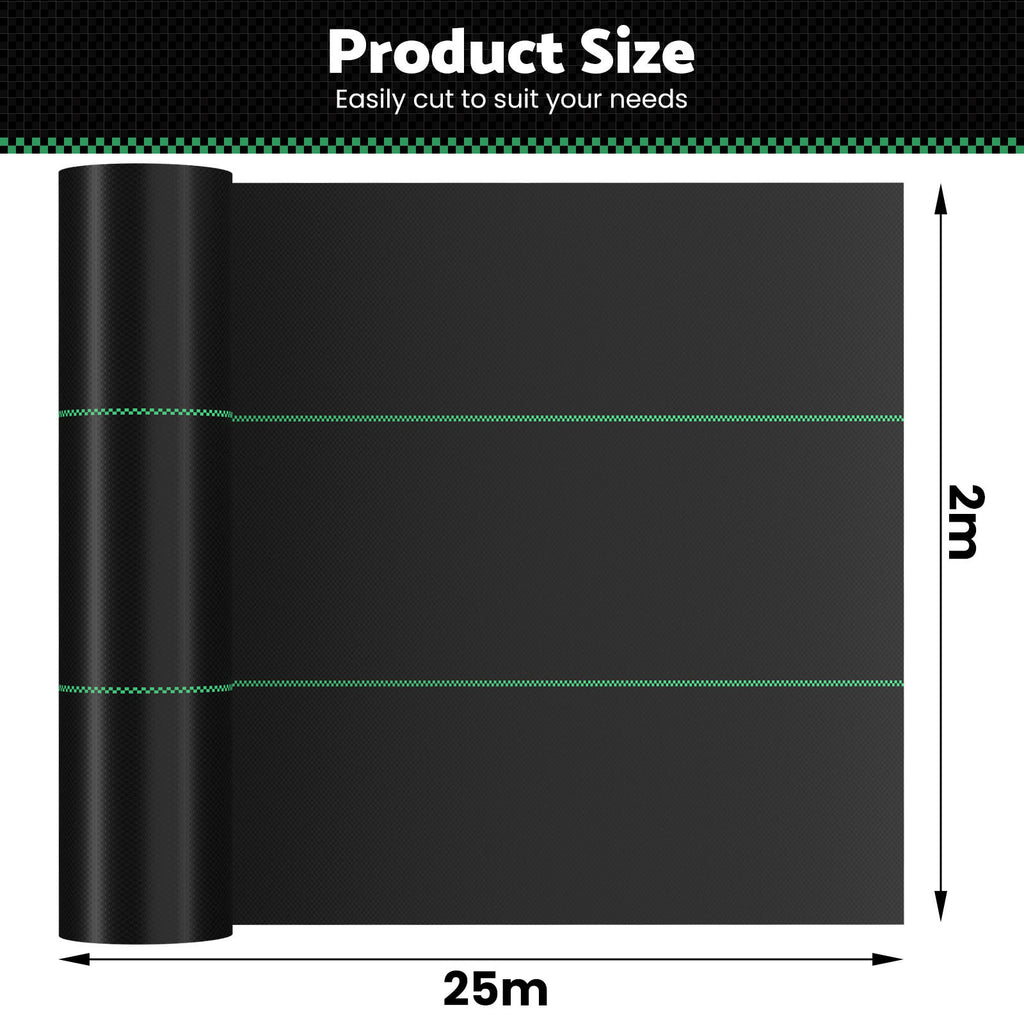 - Easy Cutting & DIY: The size of the weed mat is 1.83*50m/3.66 * 50m, providing a coverage area of 90 square meters. According to the needs of your garden, you can freely cut the size and shape of the fabric. The garden weed cloth features green stripes, makingit easy for plants to arrange.