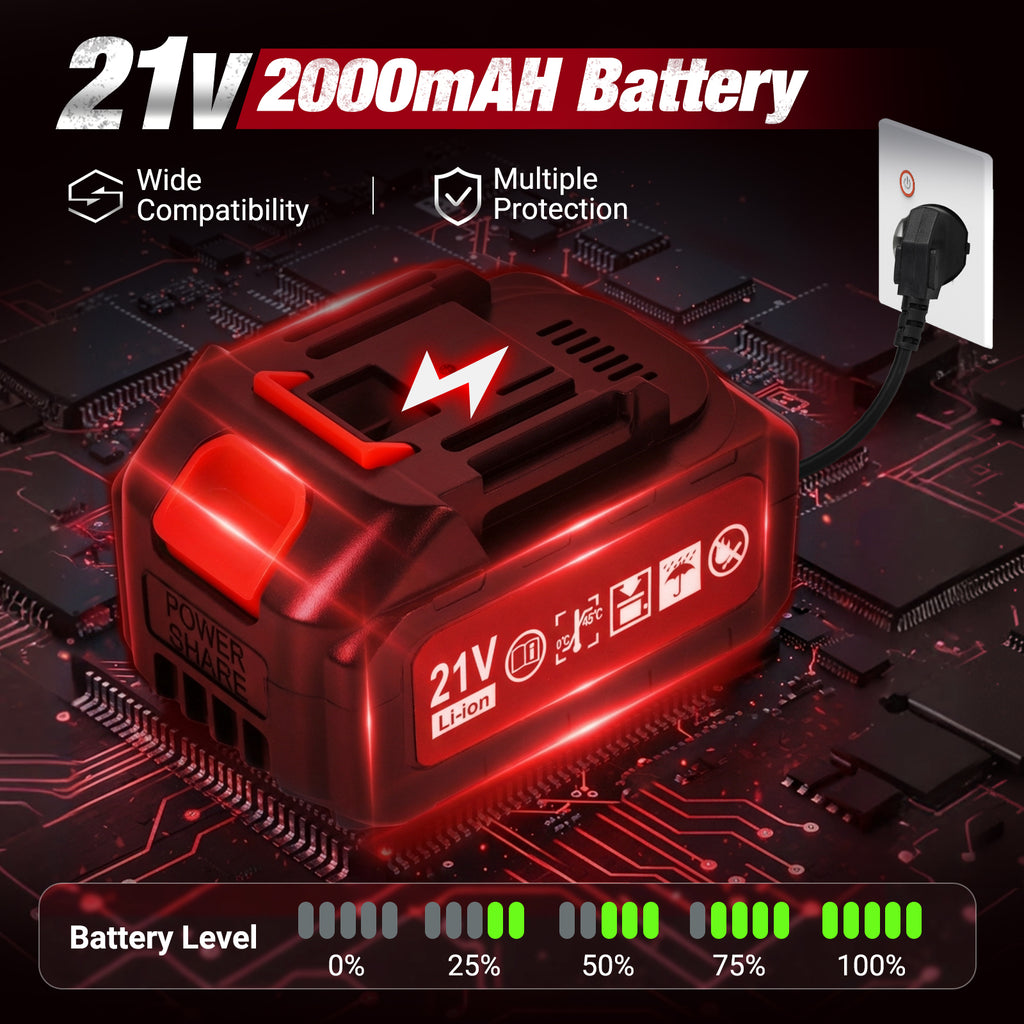 2 * 2000mAh Batteries: This cordless nail machine is equipped with two 2000mAh high-capacity batteries, providing long-lasting and uninterrupted battery life. It can seamlessly cycle operation, bidding farewell to frequent charging and waiting, greatly improving construction efficiency.