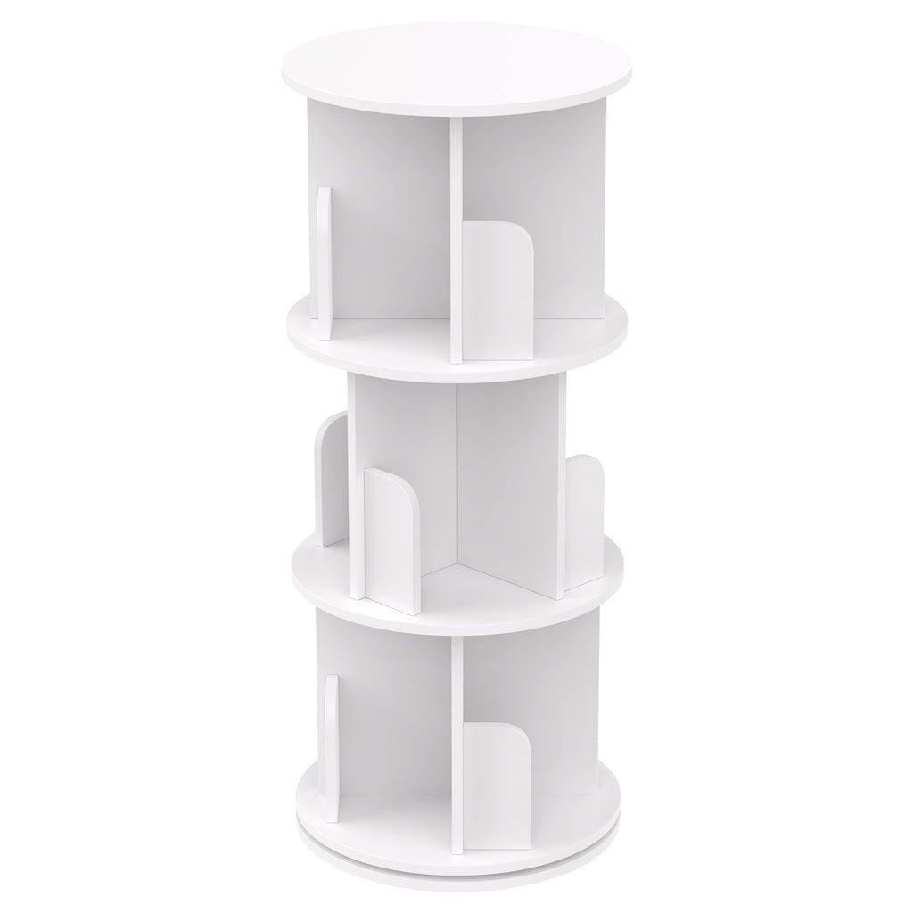 3-tier rotating bookshelf offers smooth 360° access with a sturdy ball-bearing base, making it easy for both kids and adults to reach items from any angle. Its modular design allows flexible assembly into 2 or 3 tiers to fit various spaces, from bedrooms to study corners. Made of premium WPC material, it is waterproof, scratch-resistant, and highly durable for long-term use. The compact round structure provides ample storage without taking up much floor space, while the stable base and rounded edges ensure safety.