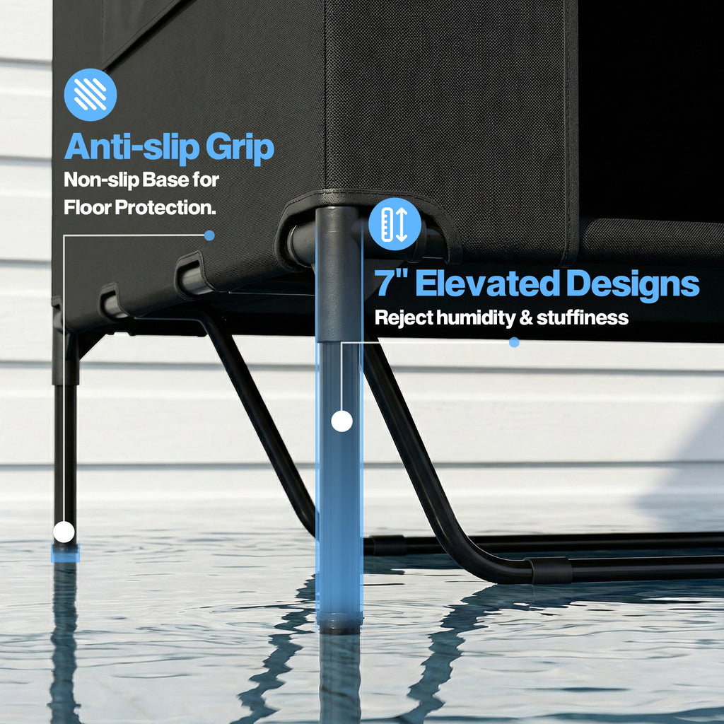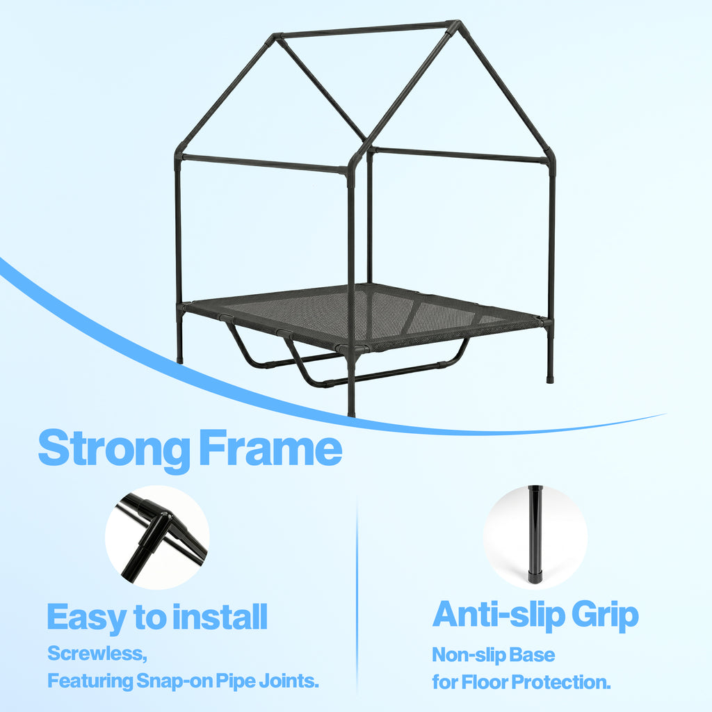 • Sturdy and Durable: The dog house indoor consists of a raised bed at the bottom and a frame with a waterproof and UV-resistant cover on top. The frame and elevated dog bed made of thickened powder-coated steel provide excellent load-bearing capacity and stability. Remove the top frame and waterproof cover, and you get a raised dog bed.
