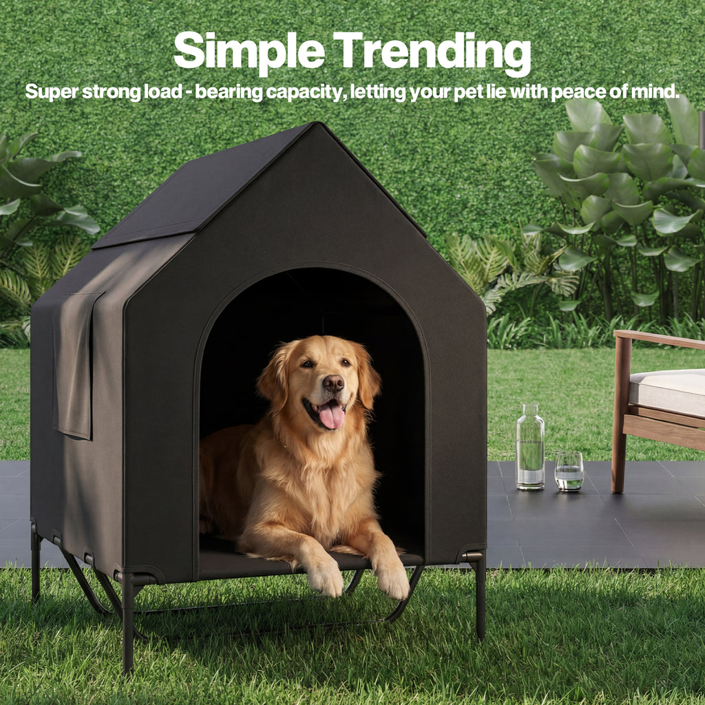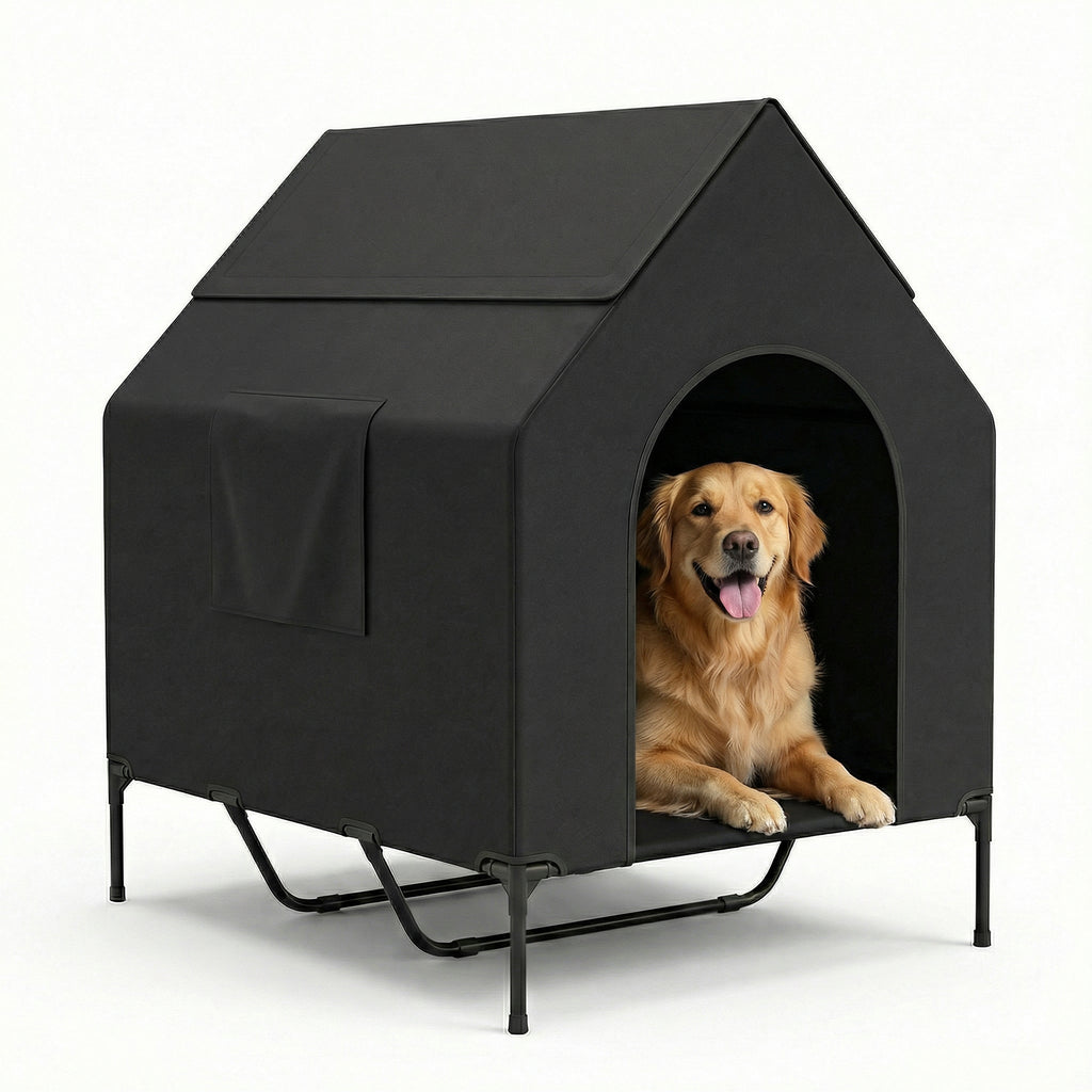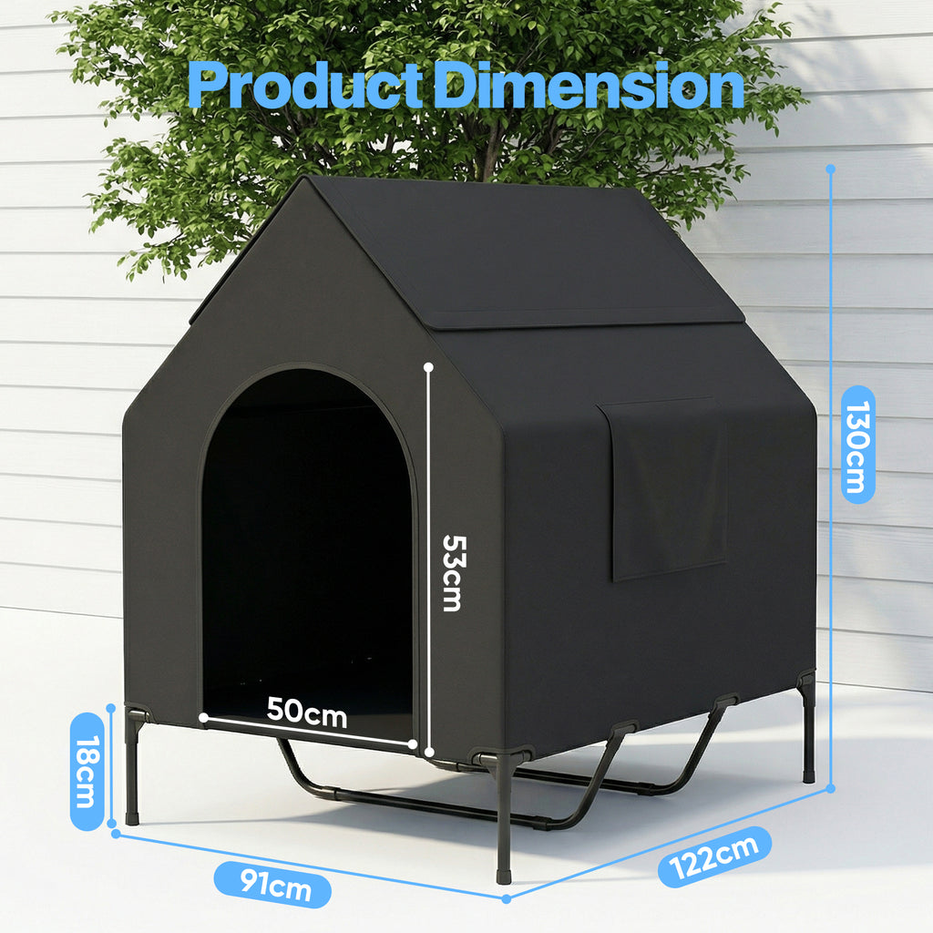 • Wind, Rain, and Sun Protection: Wrapped in 600D Oxford fabric, which is waterproof, scratch-resistant, and durable, with an inner layer of waterproof and UV-resistant PVC coating. Raised 18 cm off the ground with two reinforced bottom support bars and four sturdy legs, keeping your pet dry, cool, and away from dirt and moisture.