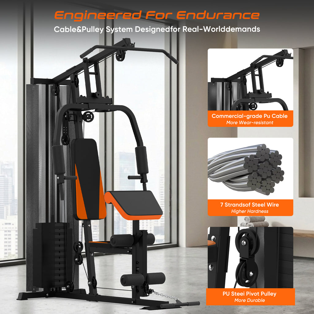 Pulleys & Cables: High/low pulley system with heavy-duty steel cables for smooth, quiet operation