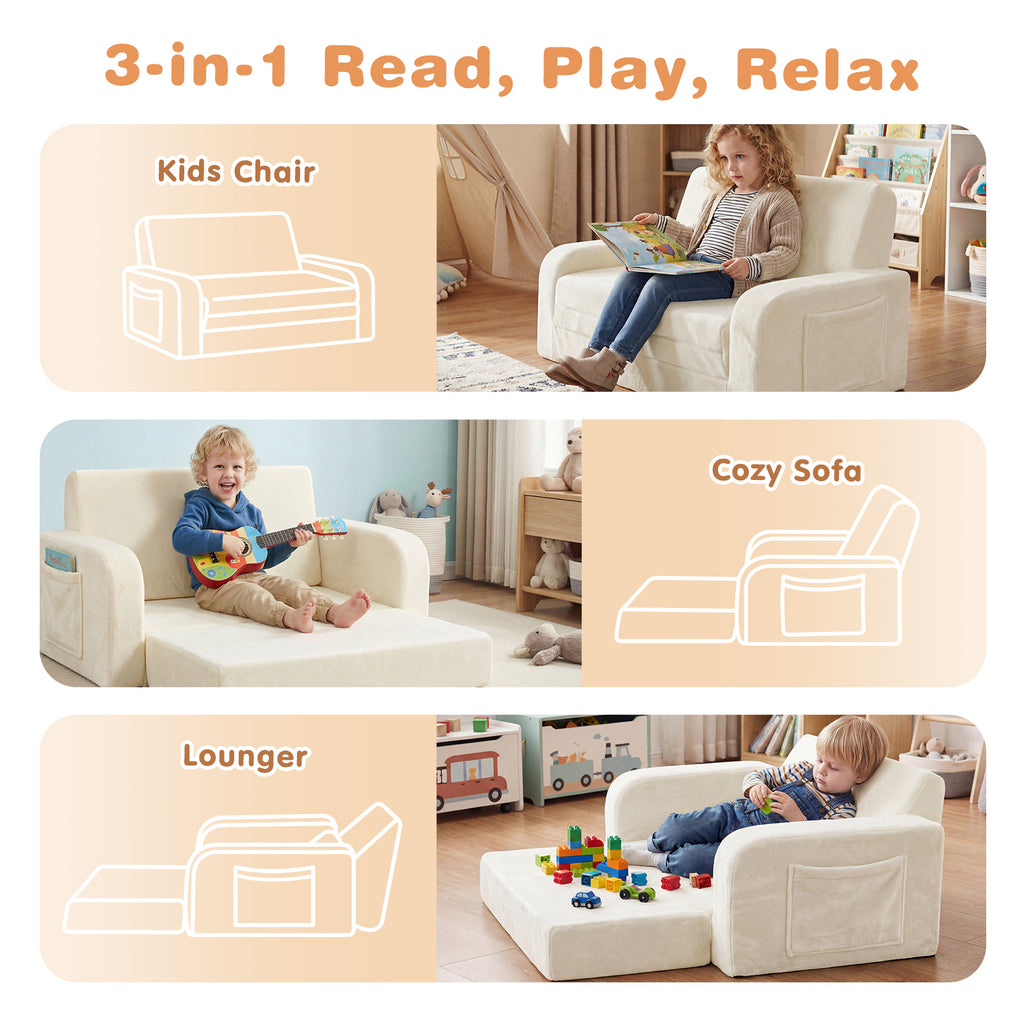 Create a cozy and flexible space just for your child with 3-in-1 kids convertible loveseat sofa.