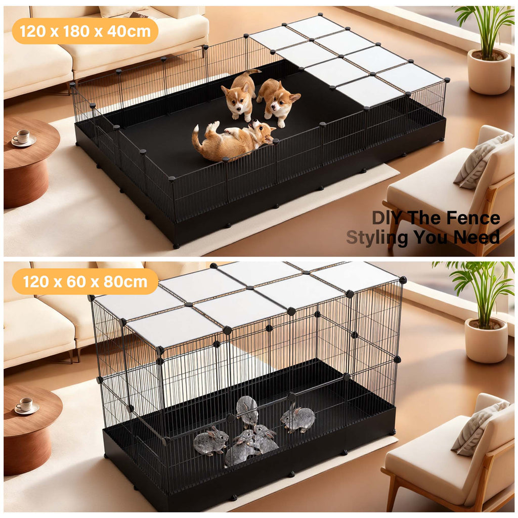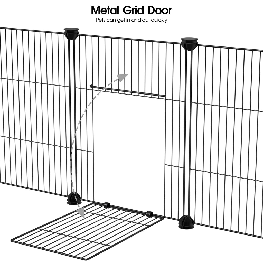 Create Your Own Pet Playpen Made of a metal frame and polypropylene resin, it is easy to clean the surface with a damp cloth.Longer service life than pet tent, not afraid of pet bite.The design of metal playpen with door is convenient for small animals to enter and exit the fence. Use cable ties to connect each panel, increasing the stability of the pet play enclosure.