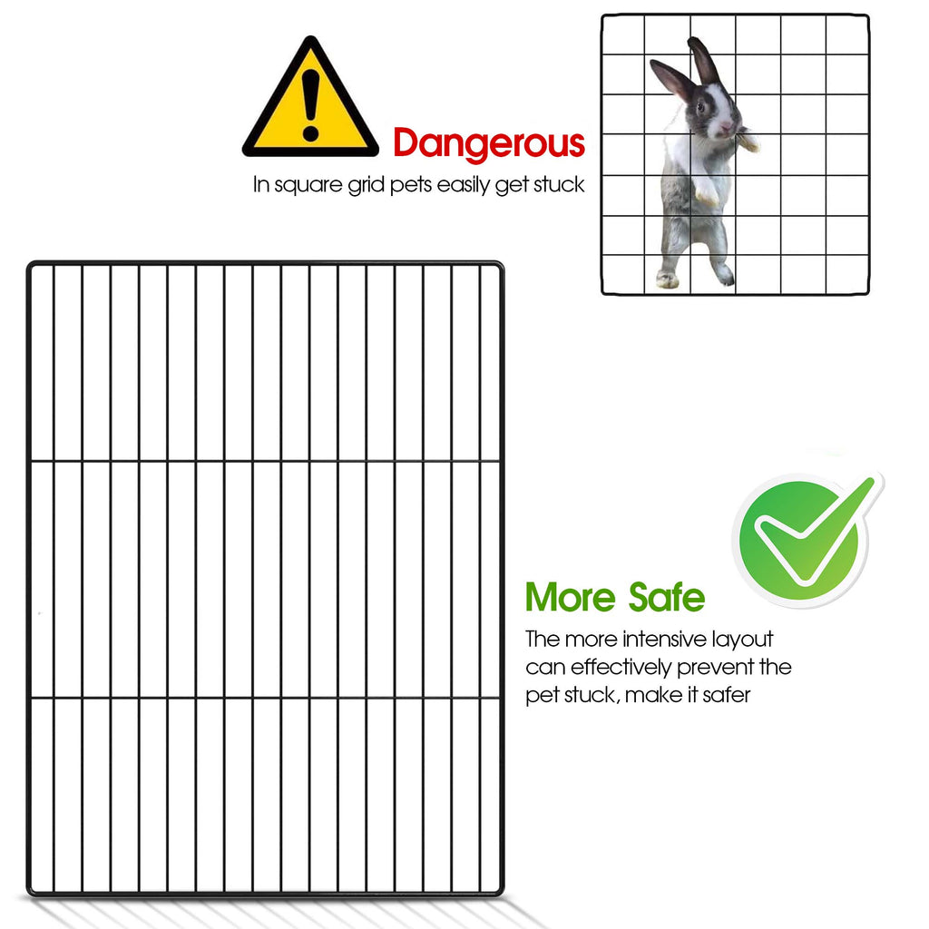 Solid Foundation: Our small animal pet playpen is made of high-quality coated steel, which is more durable and sturdy. The encrypted pet fence will not trap small animals, prevents injury and escape, provides ventilated and breathable, and prevents dampness and odor.