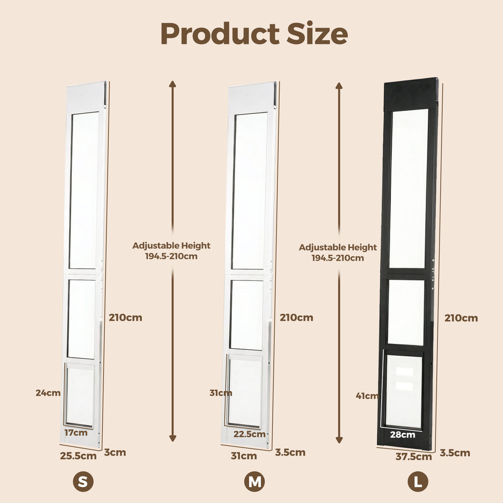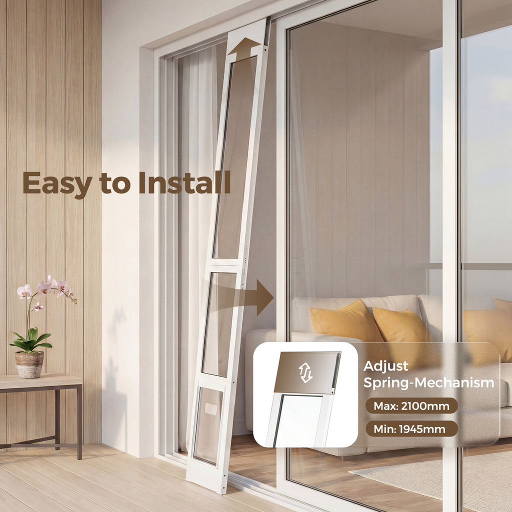 - Adjustable Height Flexibility: Customize the fit with a versatile height range of 194.5cm to 210cm to match various sliding door tracks. Ensures a secure, snug installation while providing comfortable access for pets.