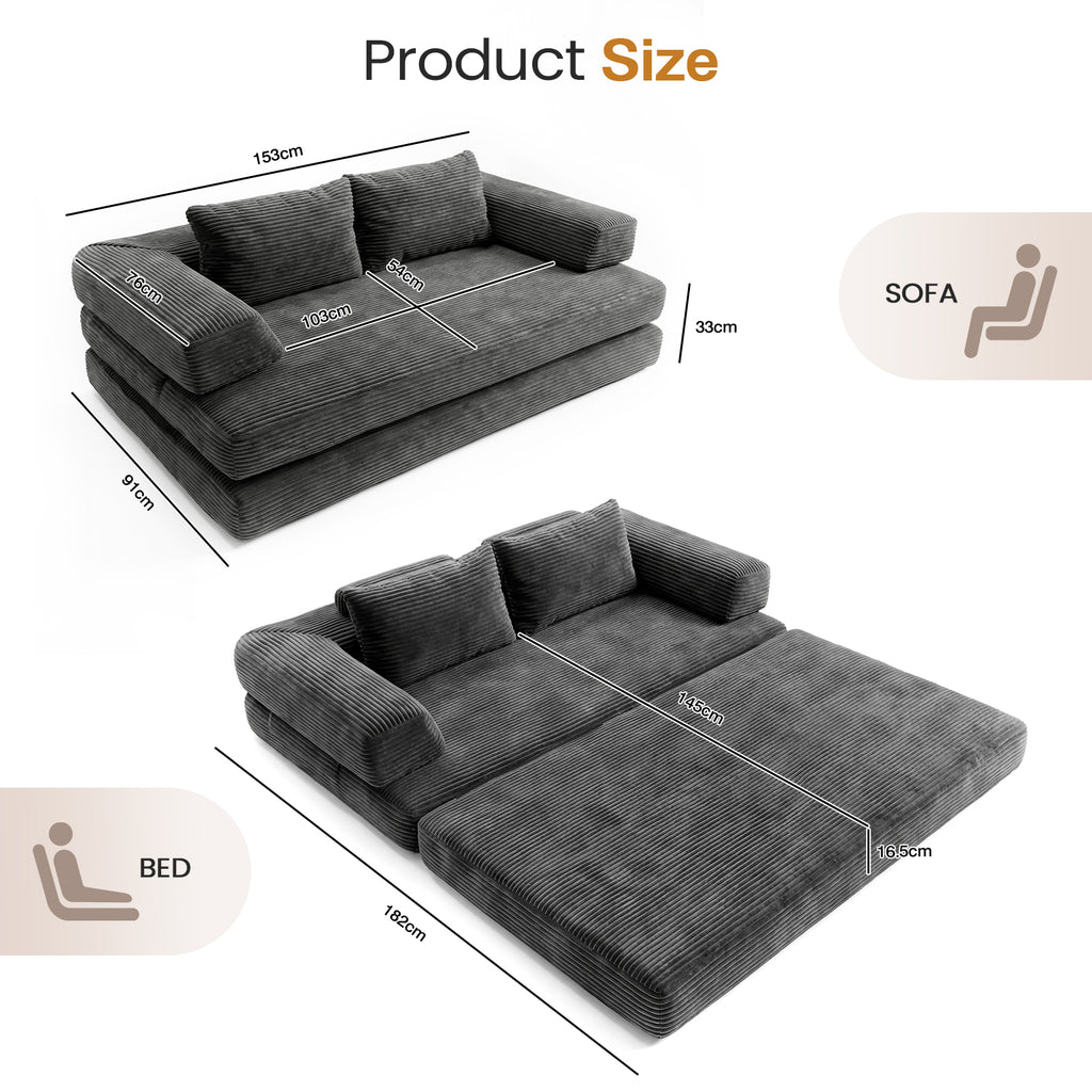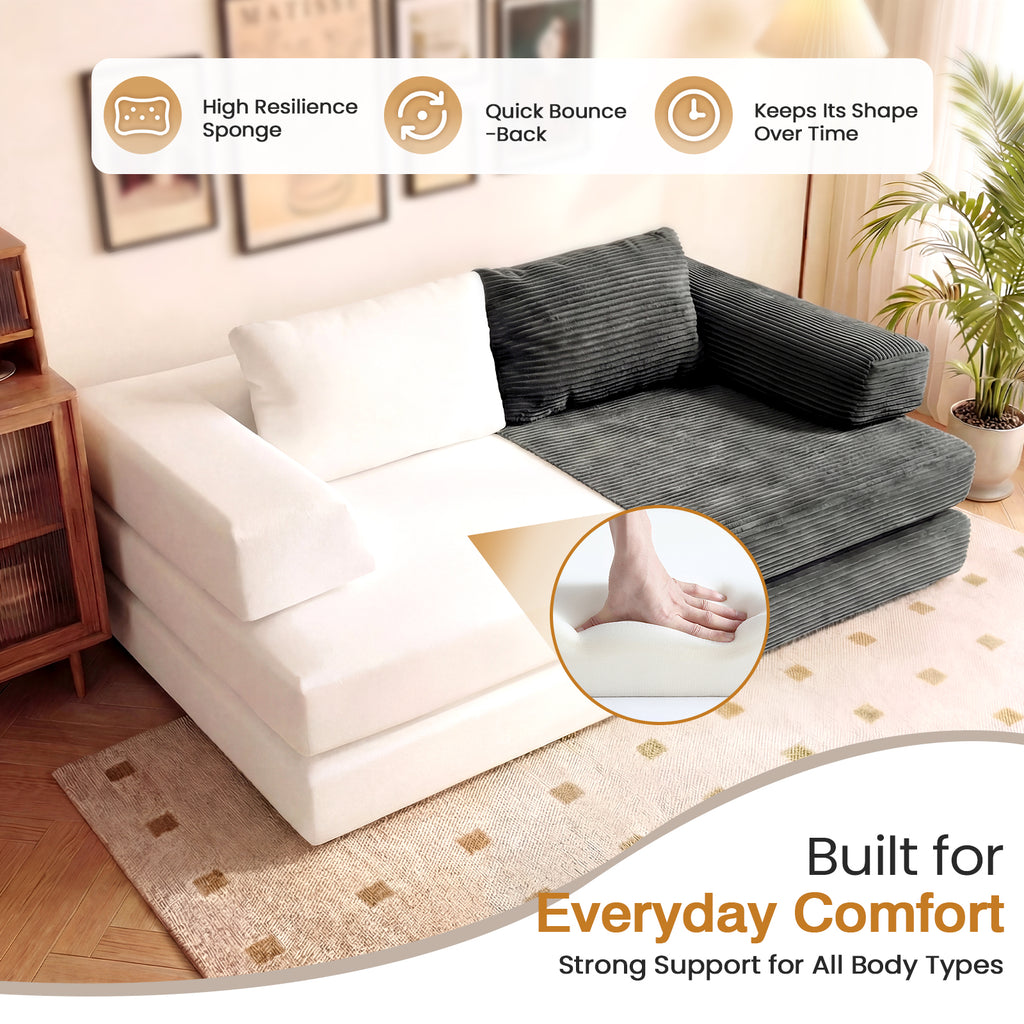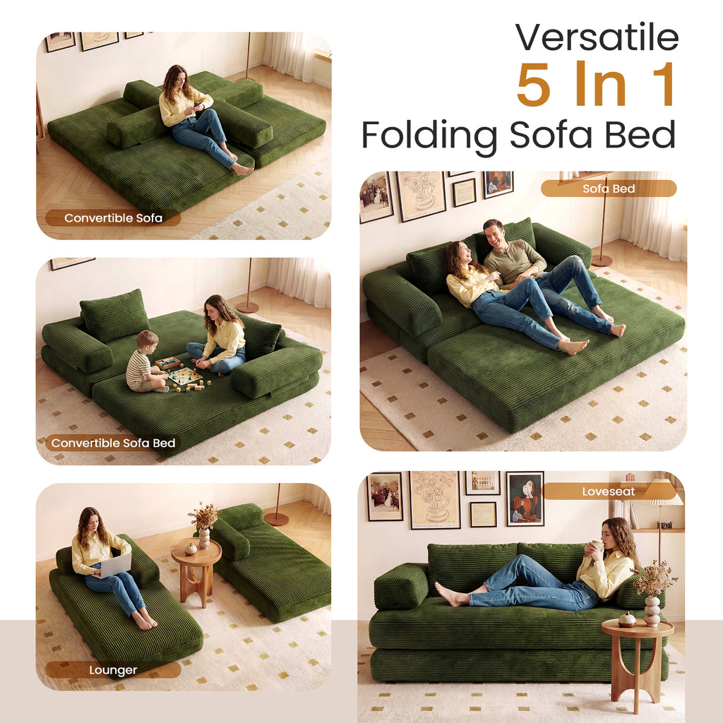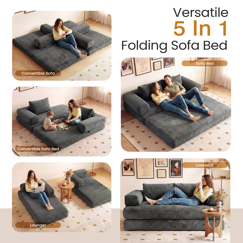 Meet the Advwin 5-in-1 Convertible Sofa Bed – your ultimate solution for stylish living and hassle-free hosting. Engineered for versatility, this innovative piece transforms effortlessly from a compact loveseat into a spacious full-size sleeper, ready to welcome overnight guests in seconds. Upholstered in soft, durable corduroy fabric and filled with high-density support foam, it offers all-day comfort for lounging and restful sleep. Its space-saving design is perfect for apartments, dorms, and living rooms.
