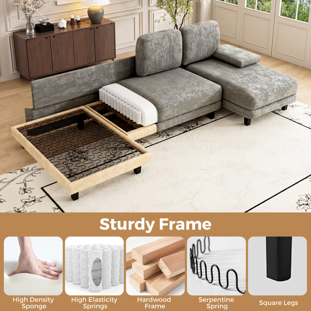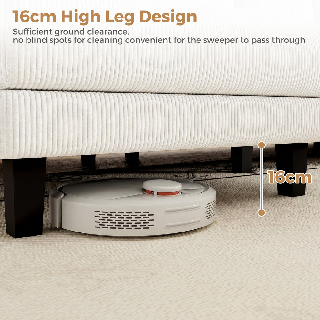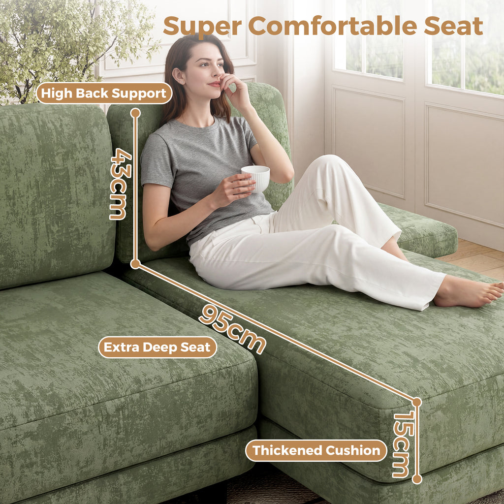 • Robust and Durable: Our sectional sofa couch uses a solid wooden frame and square legs, together with serpentine spring, durable and long-lasting, with a maximum load of 450kg to ensure that your family can lie on the sofa at will. Sofas with foot pads can protect your floor from scratches and reduce noise when moving slightly.