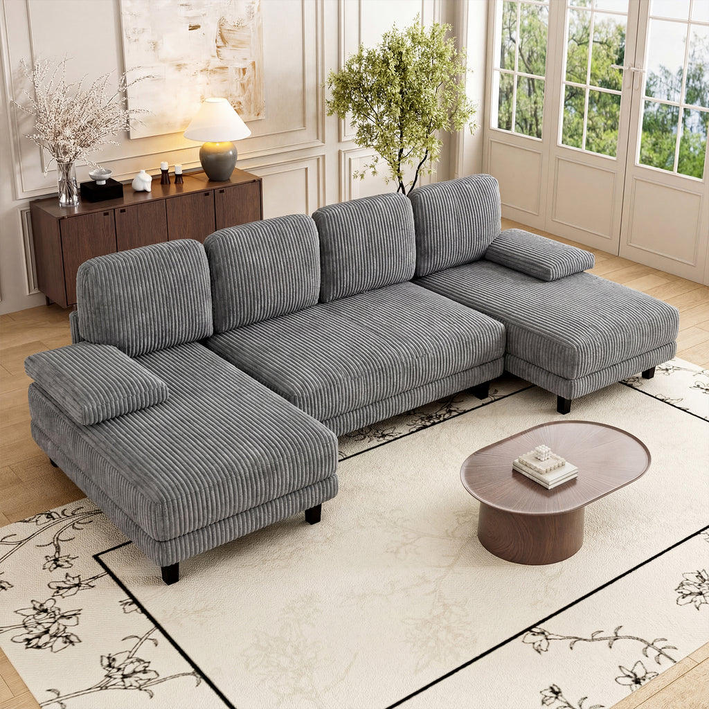 Introducing the Advwin 4 Seater U-Shaped Sofa, a perfect addition to your living room that combines comfort and style. Crafted with corduroy upholstery, this sofa provides a luxurious and skin-friendly feel, ensuring a delightful lounging experience.